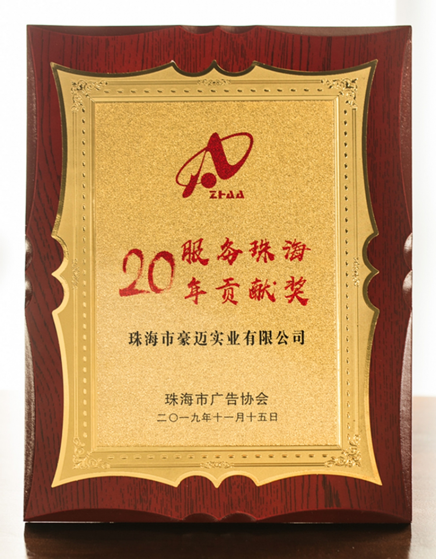 2019年珠海市广告协会服务珠海20年贡献奖